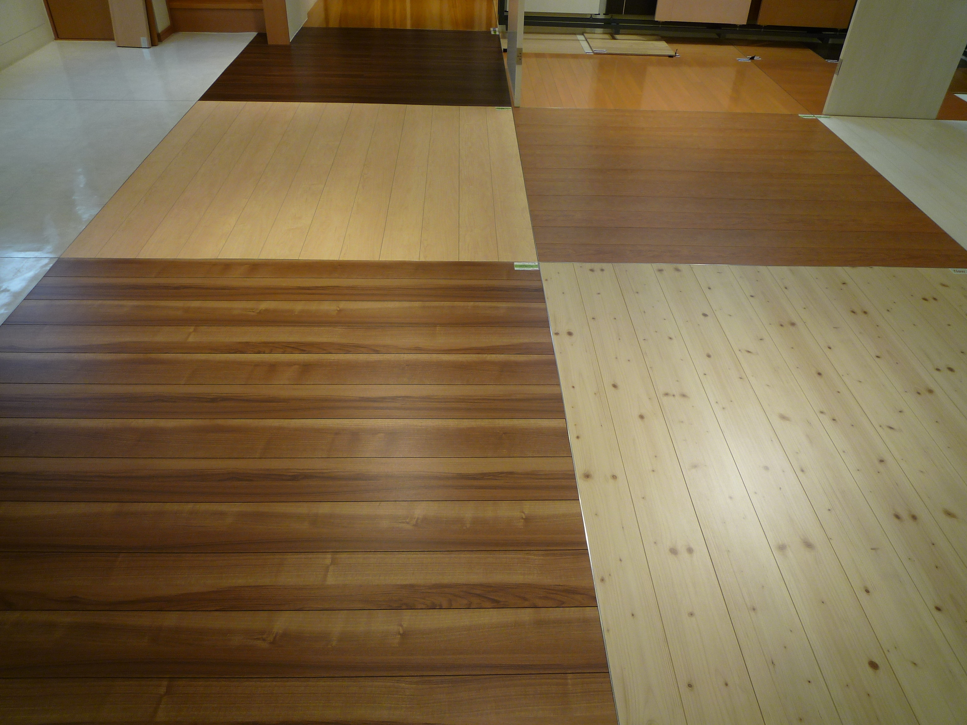 とても耐久性にすぐれています。アンモニアにも強いという事でペットを飼っている方にもお勧めの一品です。天然木の肌さわりがお好きな方のために現行のフローリングを残しつつ、今回みてきた床材も選択の一部に正式採用しようと思います。価格は少し高いのですが、会社の努力で吸収して金額はアップしないようにと思っています。色、柄も何タイプかあり、子供室用にパイン柄も最近発表されラインナップが充実しています。今建築中の現場もこの床材が貼られる予定ですので、できましたら写真を見て頂こうと思います。