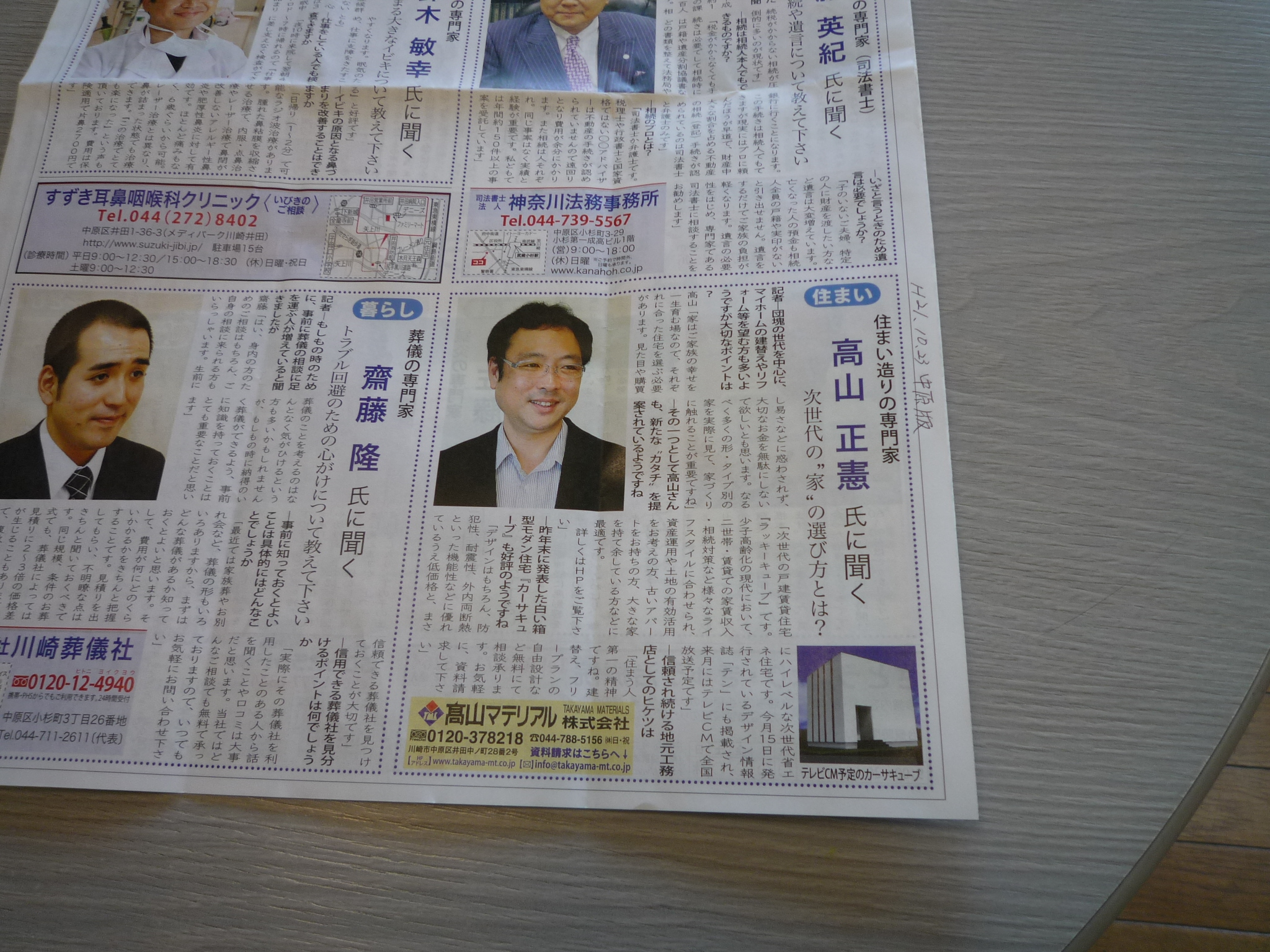 みなさん おはようございます。先週のタウン紙に大きな顔写真で載ってしまいました!中原区版なのですが、顔がバレバレですよね。本当に悪い事は出来ません(笑)。内容は家造りについての事。インタビューをうけての内容です。ここのところ、ご相談を頂いて、着工準備に入っている案件が多くあります。本当にありがたい事でスタッフ一同がんばっていきます。今日はAM 設計図面作成の最終チエックの打ち合わせ、午後は平面図上での打ち合わせと内装の雰囲気をどのようにしていくかのご提案をする予定です。台風一過でとても良い天気です。