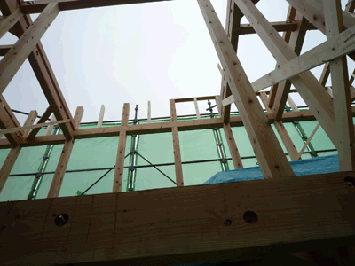 どうでしょうか? 一般の屋根とはチョット違いますので、骨組の様子も変わります。明日 上棟式の予定です。今後の進み具合が楽しみです!