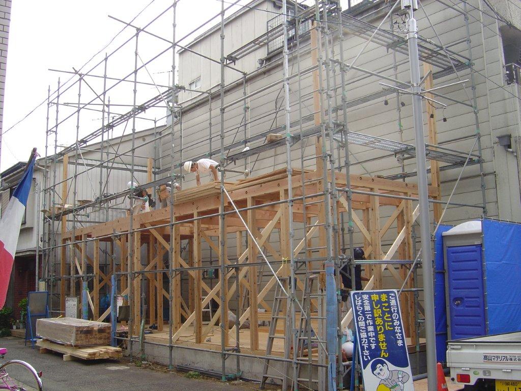 先週末より木工事がスタートした現場の写真です。実はcasa?を基本にアレンジしている建物です。私共のエリアですと、敷地条件により、そのままcasa cubeが建築できる土地が少ないのが現状です。でもcasaを建てたい!と思われている方は結構いらっしゃいますので、どのように近づけるかがポイントになってきます。中には完全に向いていない土地もありますので、ご検討中の方は目ぼしい敷地が出てきましたら相談して下さい。濃厚であればすぐに土地を見に行きますので!