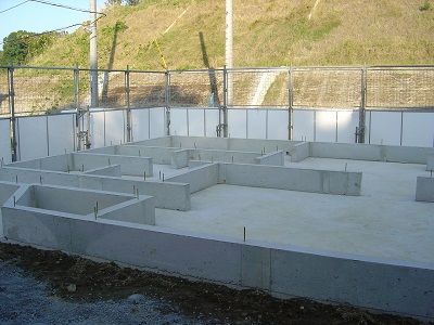 そしてコンクリート打設後 の様子です。今日から土台敷きの工程なのですが、