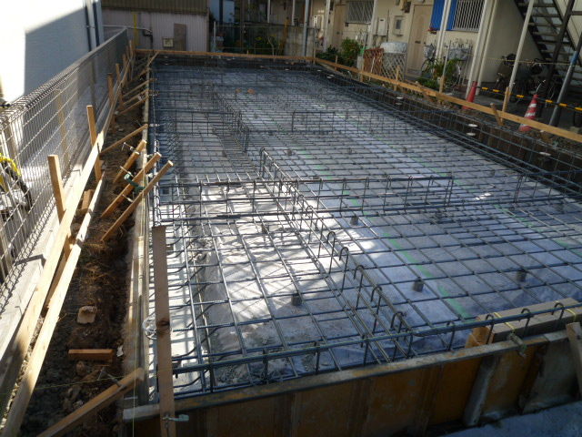 先週 幸区で配筋検査を受け、今日 耐圧コンクリートを打設します、