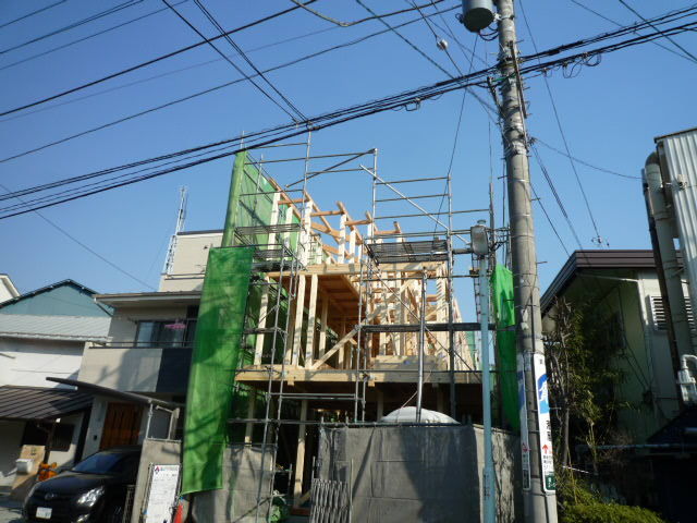 こちらは金曜日の写真なので、屋根は出来上がっています。