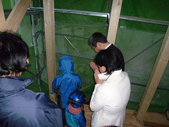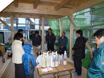 気まぐれ日記 2011年2月8日 祝 上棟 みなさん おはようございます。 昨日 幸区の現場で上棟式を行いました。いつものとおり四方固めをして 上棟飾りを取り付けます。 H瀬様も子育て世代真っ盛りです。ご家族の動線を良く検討されて今回の間取りに決定しました。 今回 私が前々からのお約束で時間がとれず、参加できなかったのが残念ですが、専務をはじめスタッフががんばってくれましたのでよかったです。 H瀬様 大変おめでとうございます!!