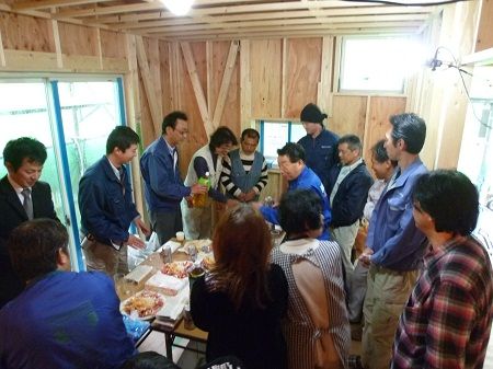 最近では現場でお酒を頂く事はほとんどないのですが、会社から近い事もあり、少しは飲まないと寂しい!とのお話がありましたので、お言葉に甘えてご相伴になりました。M本様のお人柄の良さが会場の雰囲気を盛り上げ、とても楽しい