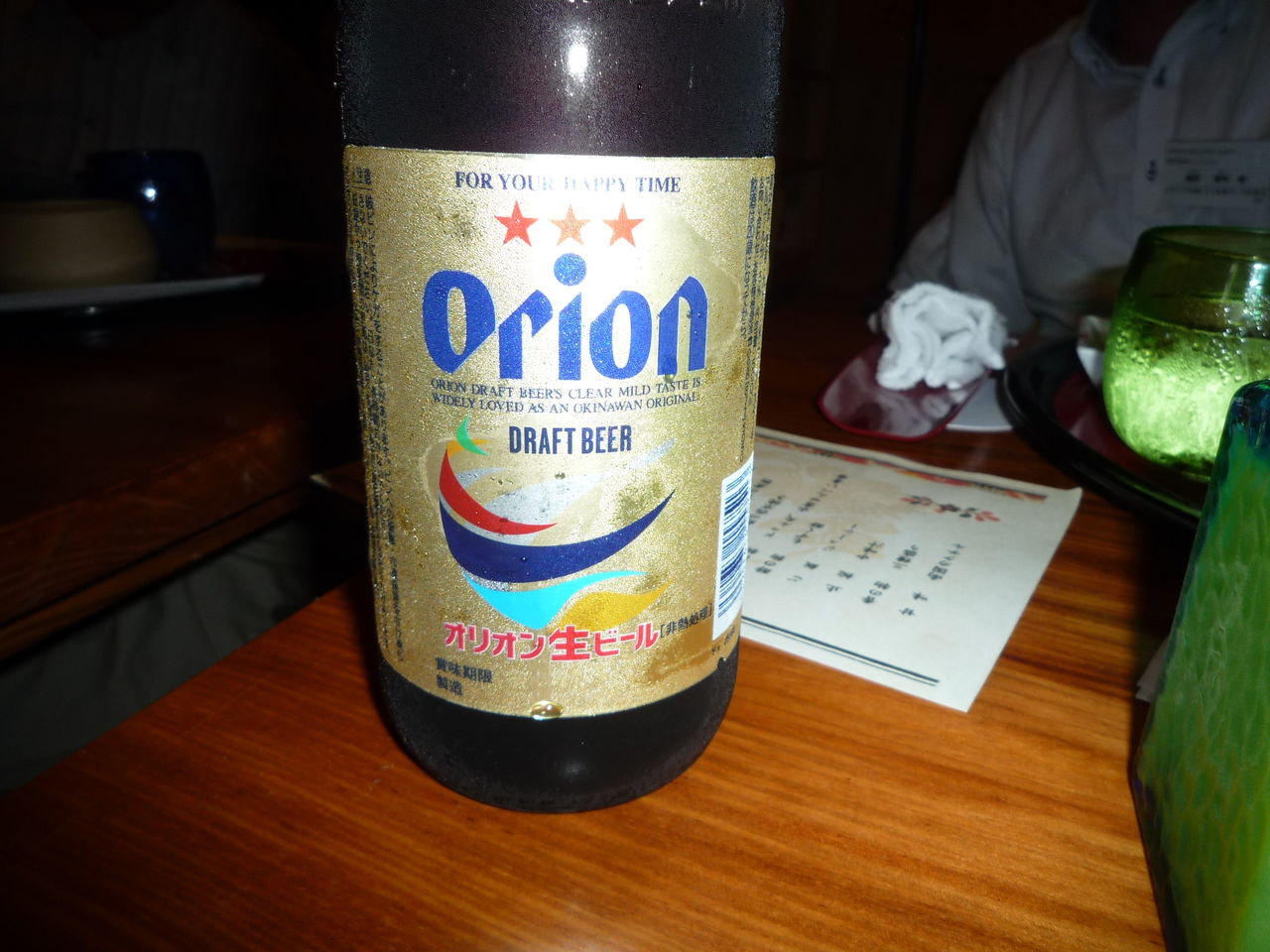 早めのホテル着でひと休み。 夜の食事でこのビールです。