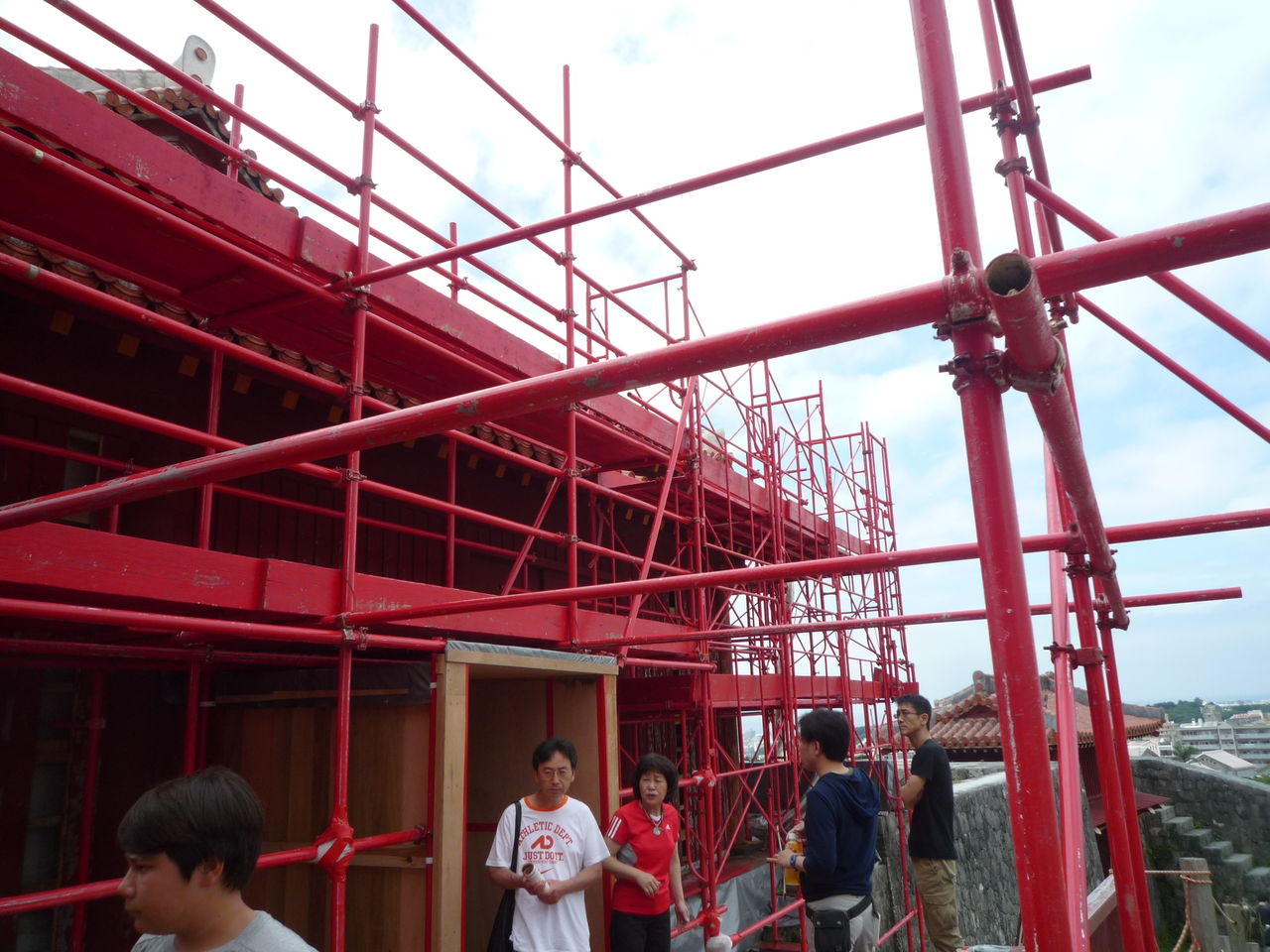 改修場所が気になり、足場が赤い! 首里城は赤いイメージそのもの