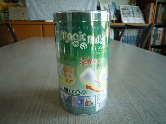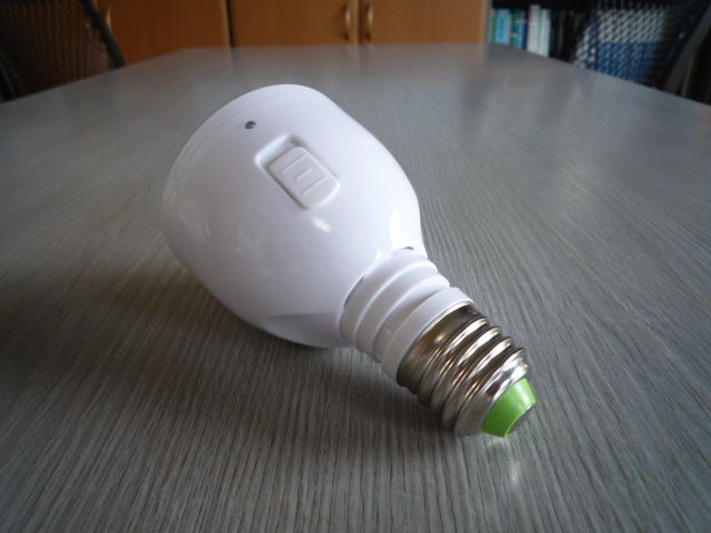 電球型LEDなのですが、バッテリーをしょっていまして、非常時には懐中電灯になります。