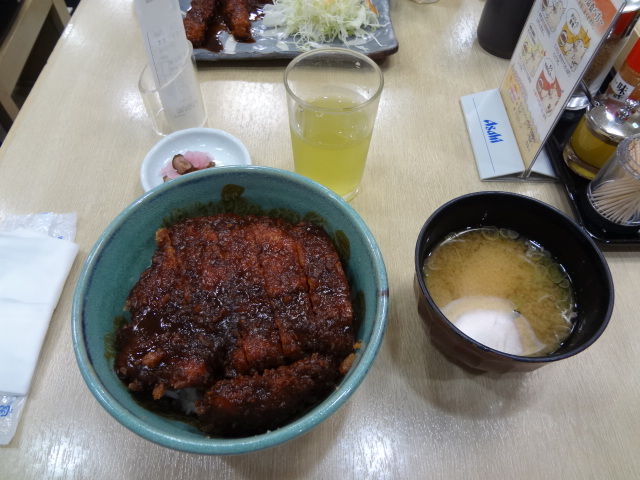 を飲んでみました。ムードOK 錯覚だと思いますが、何となく酔った気がします(笑)。11時半前に名古屋に到着。有名な矢場とんの味噌カツ丼を食べに向かいました。この時間なのに行列です。