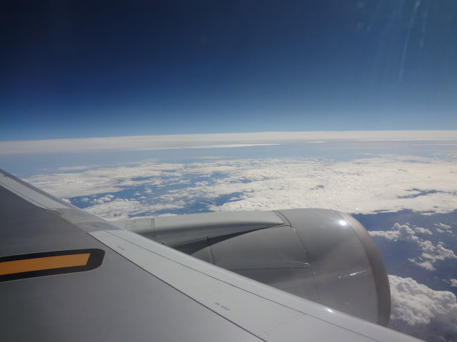 定刻よりも10分送れでしたが、気流も安定していてゆれは少なかったです。いつも思うのですが、こんなに大きい物が空を飛ぶのは理屈は分かっていても何だか不思議です。