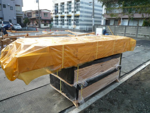 上が米松材の土台です。時々 トラックに載っているのを見かけます。