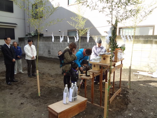予定どうり、幸区で地鎮祭を行いました。約5年前に今回の左となりのT沢邸を建てさせて頂き、ご縁があって真となりのA井邸も着工のはこびとなりました。A井さんはご家族5人で一番下のお子さんは数ケ月前に生まれたばかりです。