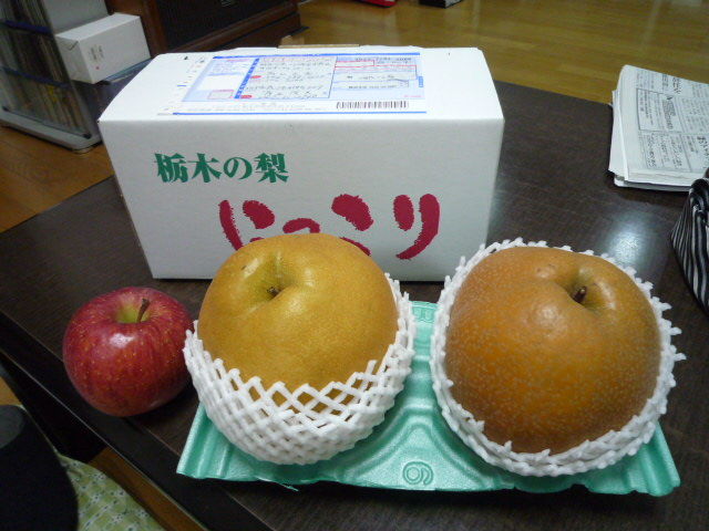 気まぐれ日記 2011年12月9日 ごちそうさまです! みなさん おはようございます。 整体に行ってきたのですが、いまだ本調子に戻れず、苦戦しています。これからまた行こうと思います。 御歳暮に頂いた、にっこりです。 今朝 食べました。とてもさくさくしていて、甘みも丁度良く、とても美味しいなしです。 もとい にっこりです。(笑) 次回はむいた状態をみてもらわなくてはいけませんね。 今日も雨 現場は辛い日になりそうです。