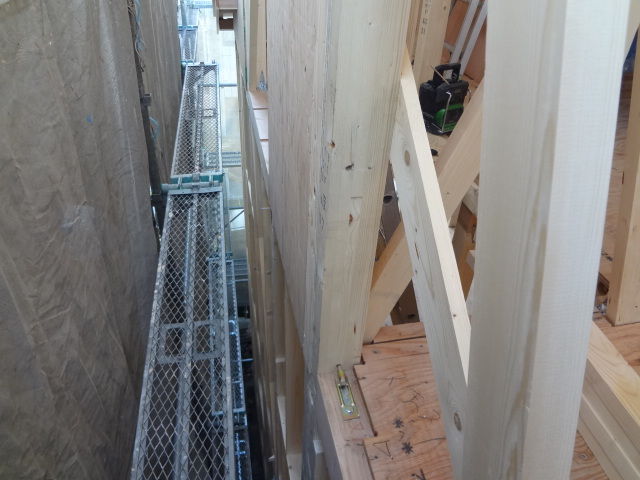 昨日 幸区で3階建て住宅、A井様の上棟式を行いました。式の前に重原先生が現場の確認をして、中間検査の日程を調整しました。