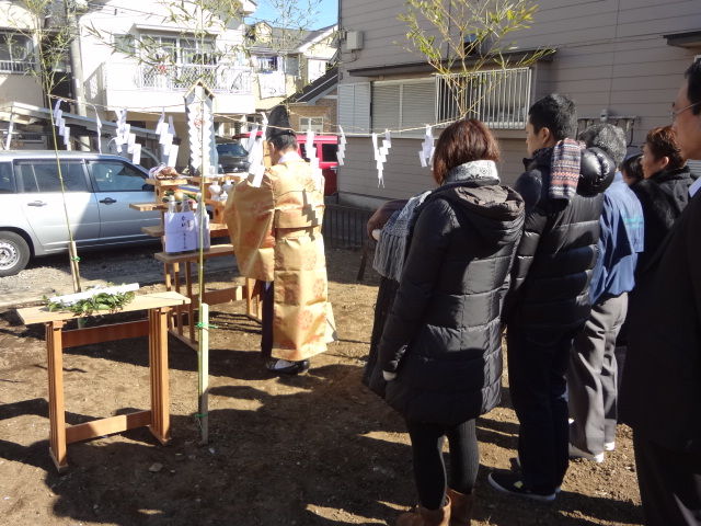 月曜日に麻生区で地鎮祭を行いました。今回の建物は玄関1つの2世帯住宅です。このレイアウトはすでに何件か、オーダーを頂いて建てています。もちろん玄関2つも有ります。都心部では限られた敷地で有効に建てようとすると、玄関1つがメリットあるように思えます。