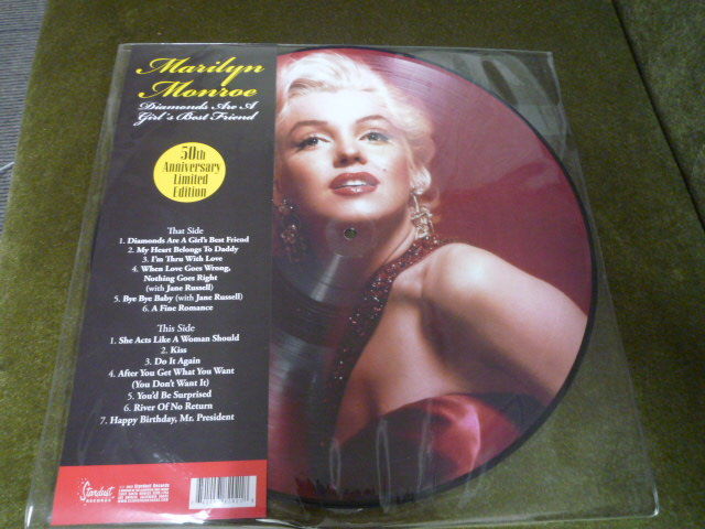 完璧にジャケットが良かったので買いました。盤にモンローが写っています。 お値段は約2500円! 自分が中学生の頃とほぼ同じです。中には1000円代で買えたり、1万オーバーのものもありますが、今回はお手頃です。まだもったいなくて聞いていないのですが、眺めているだけでも楽しいです!