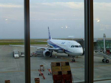帰りの便はA320という機体でした。時間は7時半なのにこんなに明るいのです。関東とは違いますね。