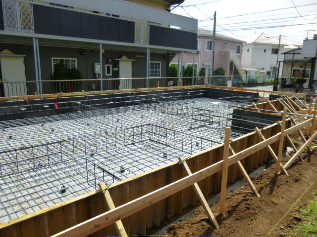 先日、casa4+賃貸の物件で配筋検査を受けて、コンクリートを打設しました。今は内側の枠を入れて、立ち上がり部分の打設準備をしています。少し前の写真ですがご覧下さい。