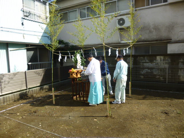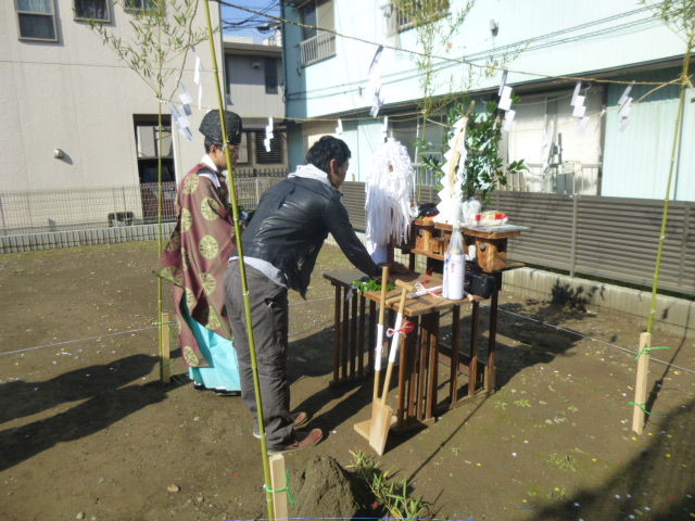気まぐれ日記 2012年11月8日 続いて みなさん おはようございます。 中原区で地鎮祭です。宮司さんはいつもの住吉神社様。 たまぐし を供えています。 T岡様 おめでとうございます! 約30分程の式です。 そののち、近隣のごあいさつを済ませました。 確認申請中ですので、降り次第、基礎着工となる予定です。 現場見学会の予約もおかげ様でだいぶ埋まってきました。ご希望の方は早めにお申し付け下さい。お待ちしております。