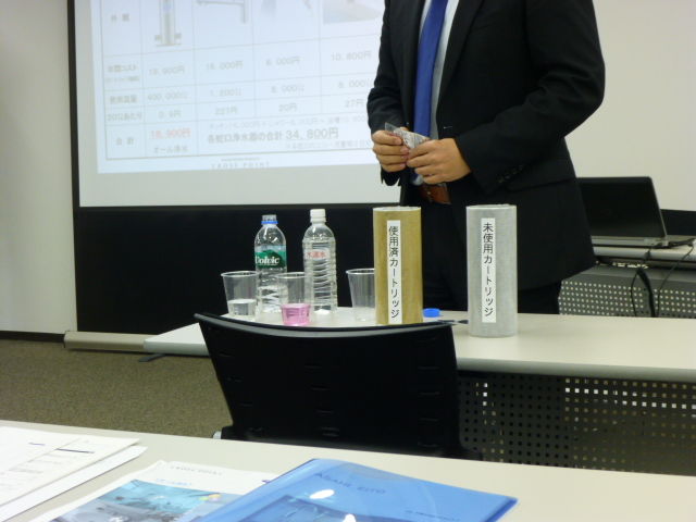 昨日の品川での会合は面白かったです。特に浄水器の実験です。塩素が入っている水道水と、ペットボトルの水、ある薬品を入れると色が変わります。 水道水に人の手を入れると塩素が手に吸収されて、水が反応しなくなります。(塩素がないからです。) こんな違いがあるとは思いませんでした。オール浄水 必須かもしれません。