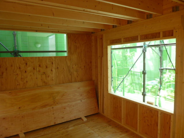 2階の壁です。下から組んでいきますので空が見えます。