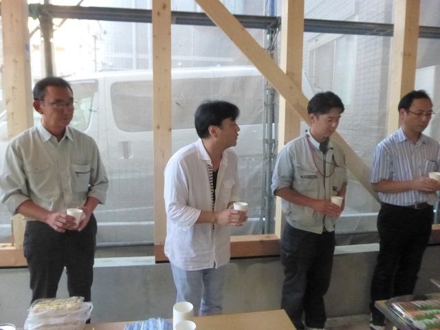施主様より、ご挨拶を頂き、私が一言ご挨拶をして、設計の重原さんに乾杯の音頭をお願いしました。