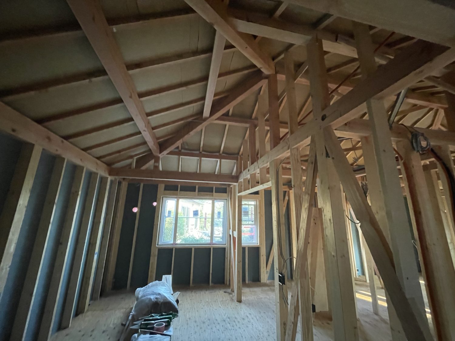 この建物はUA値0.37 断熱等級6 の認定を取得しています。断熱材は屋根は175mm 壁105mmです。