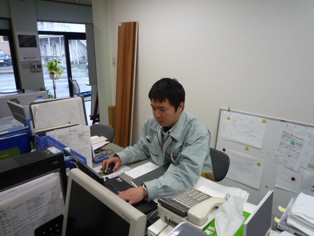 彼が落合君です。3月末から勤務してくれているのですが、30代前半のマテリアルとしては若手です。(私も含めいつの間にか40代が主力のメンバーとなってしまいました!)2級建築士の資格を持ち、現場の事が知りたいという事で当社と縁がありました。私が言うのも変ですが、真面目 一生懸命が彼の特徴でしょうか。沢山の事に出会って経験を積んで、大きくなっていって欲しいと思います。