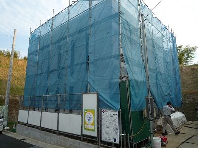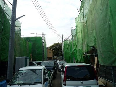 5件まとまっていますと、何かと効率良くできます。工事車両が多いのがチョット大変なところですが。基本は2×4です。外部はモルタルに吹き付けです。