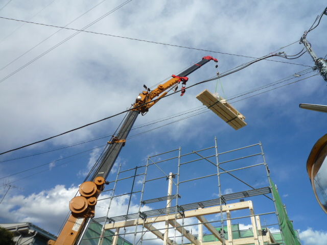 昨日 重機を入れて建て方を始めました。SE工法のcasa soleです。 打ち合わせがあり、夕方まで立ち会えなかったのですが、途中までの経過を見て頂こうと思います。まずは全体の状況です。