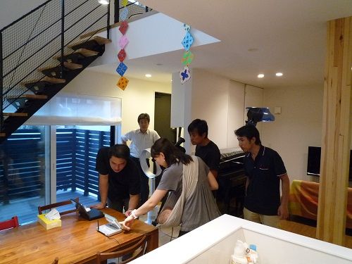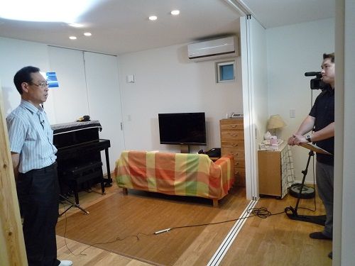土曜日、夕方からcasa soleの実邸であります、Y口邸に行きました。夕方5時前に着いたのですが、撮影真っ盛りで施主様のインタビューが行われていました。玄関を開けて入ると照明や人の熱気でムンムンしています。これぞTVで見る真の撮影現場なのです!