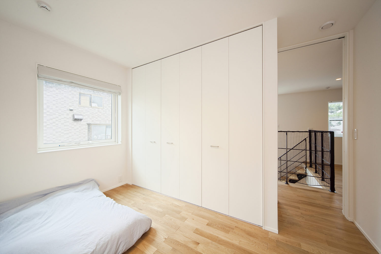主寝室には大きなクロゼットを配置。窓は3重ガラスを採用して気密・断熱性をアップ