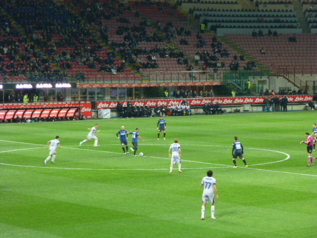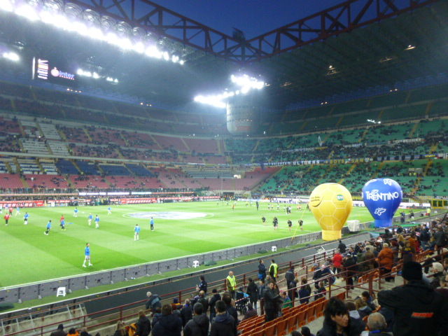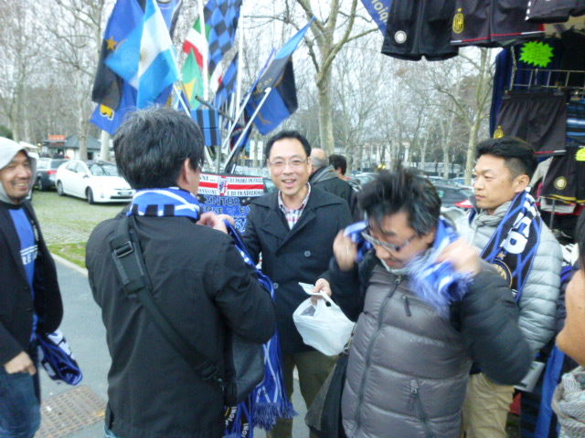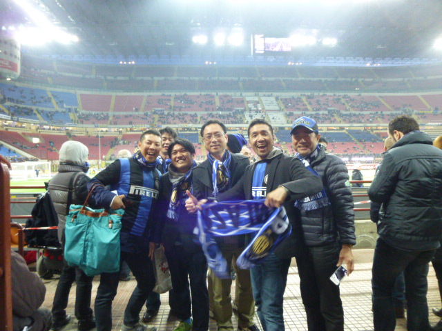 海外視察 2013年4月9日 イタリア 2日目 その2 みなさん こんにちは 先程、朝食をすませ、部屋に戻ってきました。それでは続きを。 (7日の出来事です。) 地下鉄に乗り、セリエA観戦 インテルVSアタランタ戦です! サポートグッズを手に入れて会場へ、 すごい雰囲気を感じました。 本場のサッカーを誕生日に見ることができて、感動です。 無事52歳になりました。