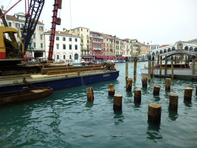 水中に松の杭がうたれています。これで、建物をささえるのです。木は水分を含んでいると腐らないでもちます。